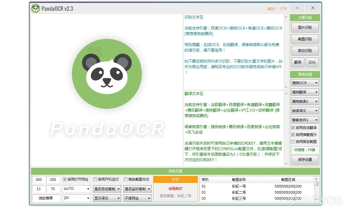 支持识别引擎:搜狗OCR/API+腾讯OCR/API+百度OCR/API+有道OCR/API+京东OCR